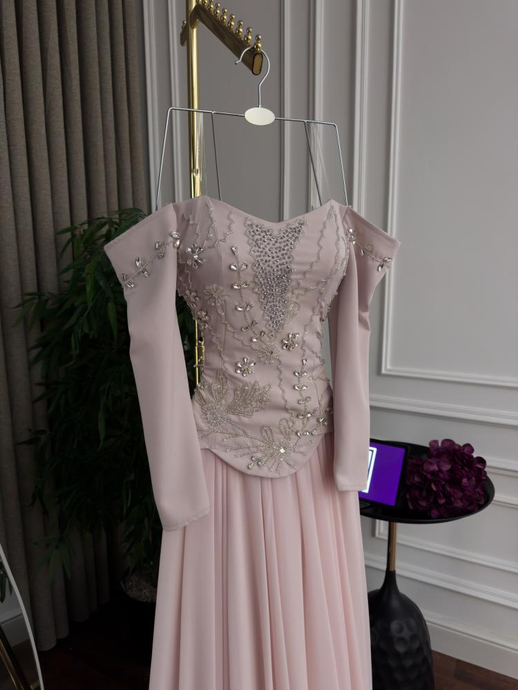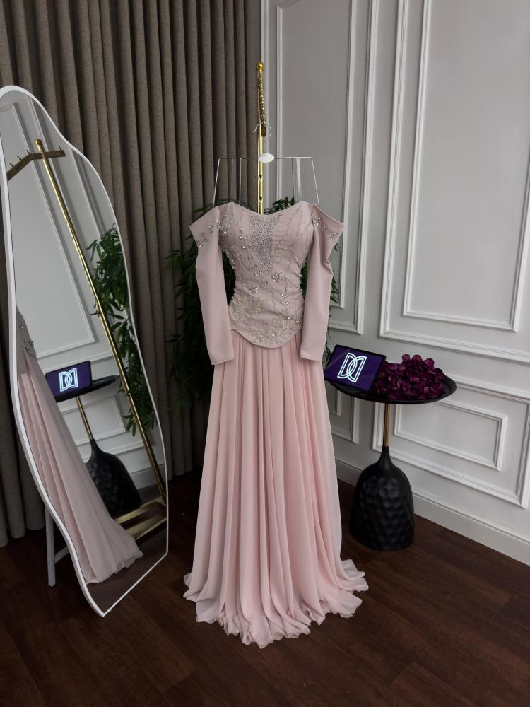 فستان سهره باربي الصدر تطريز يدوي وكلوش دبل شيفون